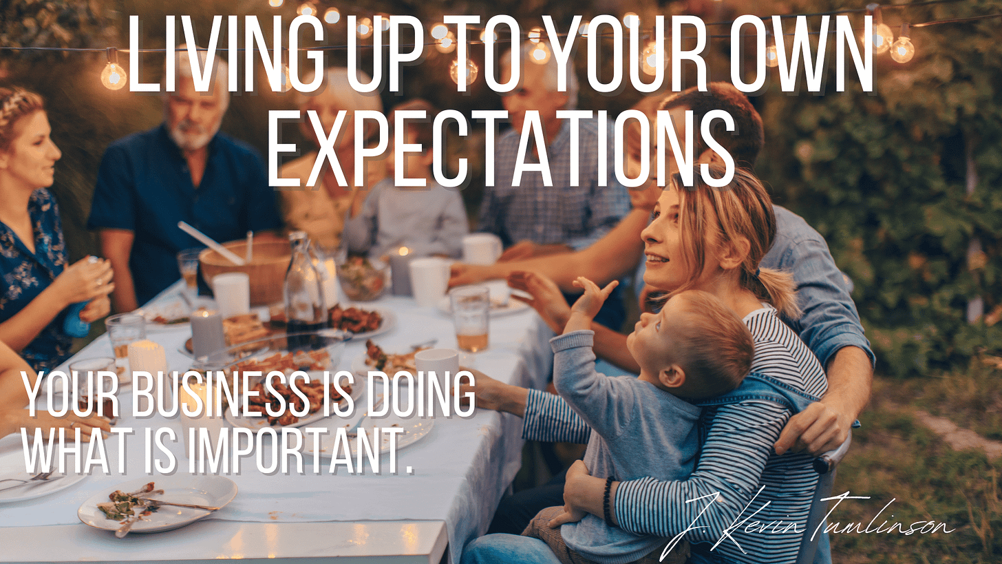 You need to determine, right now, what expectations you have on your life, for your life. And you need to commit to this business of doing what’s really important. Live up to your own expectations. It’s the law of you.